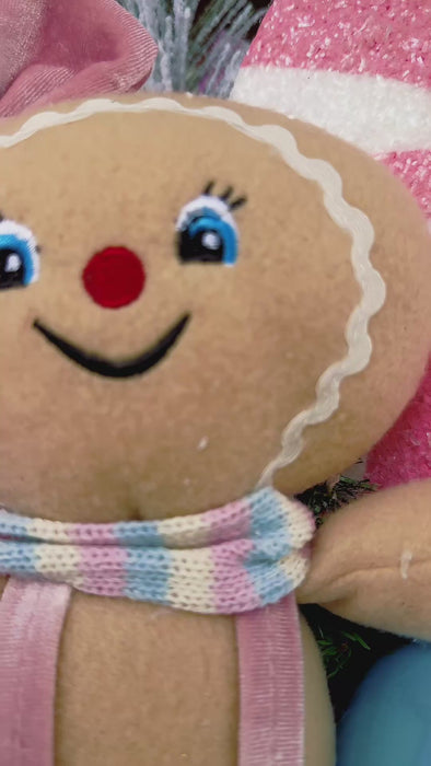 Add a sprinkle of sweetness to your holiday décor with this Sweet Gingerbread Girl Wreath. Designed in soft pastels and candy-inspired details, it features a charming gingerbread doll surrounded by peppermint accents, frosted greenery, and layers of shimmery pink and mint ribbon. Perfect for anyone who loves a whimsical, bakery-inspired Christmas look that feels merry and magical.